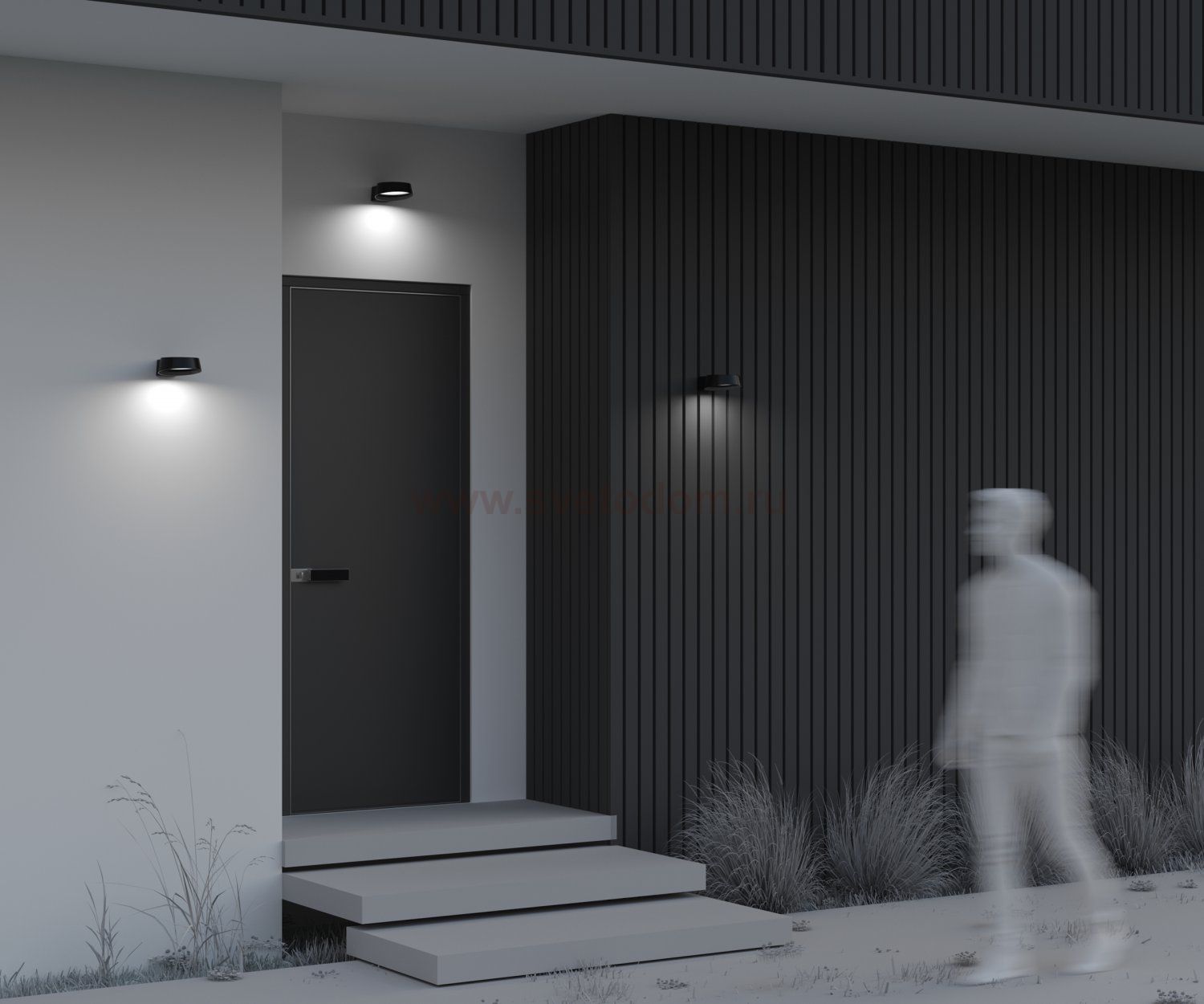 Материал корпуса - алюминий, цвет - графит. Белый рассеиватель из акрила. LED-источник света, цветовая температура - 3000К. Степень защиты - IP54.