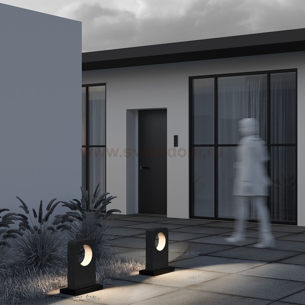 Материал арматуры — основание из алюминия, основная часть из цемента. Цвет — серый. Два вида корпуса — прямоугольный и цилиндр. Защита — IP65. LED-источник света. Цветовая температура 3000К. Высокий индекс цветопередачи CRI 90 — естественная цветопередача.