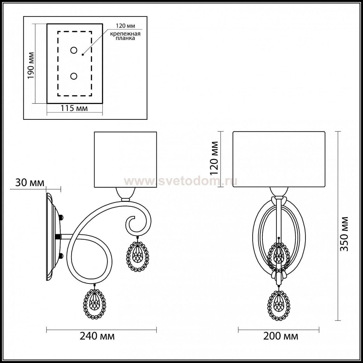 Арматура, декор: металл, хрусталь; плафон: ткань органза Материал плафона