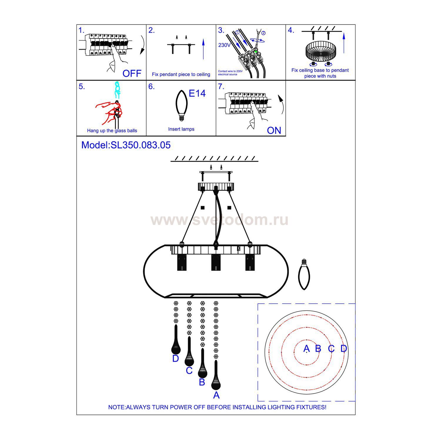 Касаемо коллекции модели St luce SL350.083.05 хотелось бы отметить основные моменты: Preferita-коллекция люстр в стиле арт-деко с тканевыми абажурами в богатой цветовой палитре. Основания светильников выполнены из металла с хромированным покрытием. В абажурах используется специально обработанный жатый шелк, который не рвется и стоек к воздействию температур. Элегантность колекции подчеркивают прозрачные стеклянные подвески каплевидной формы, которые особенно гармонируют с округлой формой абажуров.