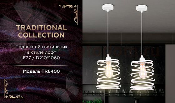 Подвесной светильник из коллекции TRADITIONAL. Модель TR8400 представлена в современном стиле лофт. Светильник оригинальной формы, выполнен в белом цвете, каркас изготовлен из металла. Для данной модели подойдут лампы с цоколем Е27. Светильник будет прекрасным дополнением в любом помещении.