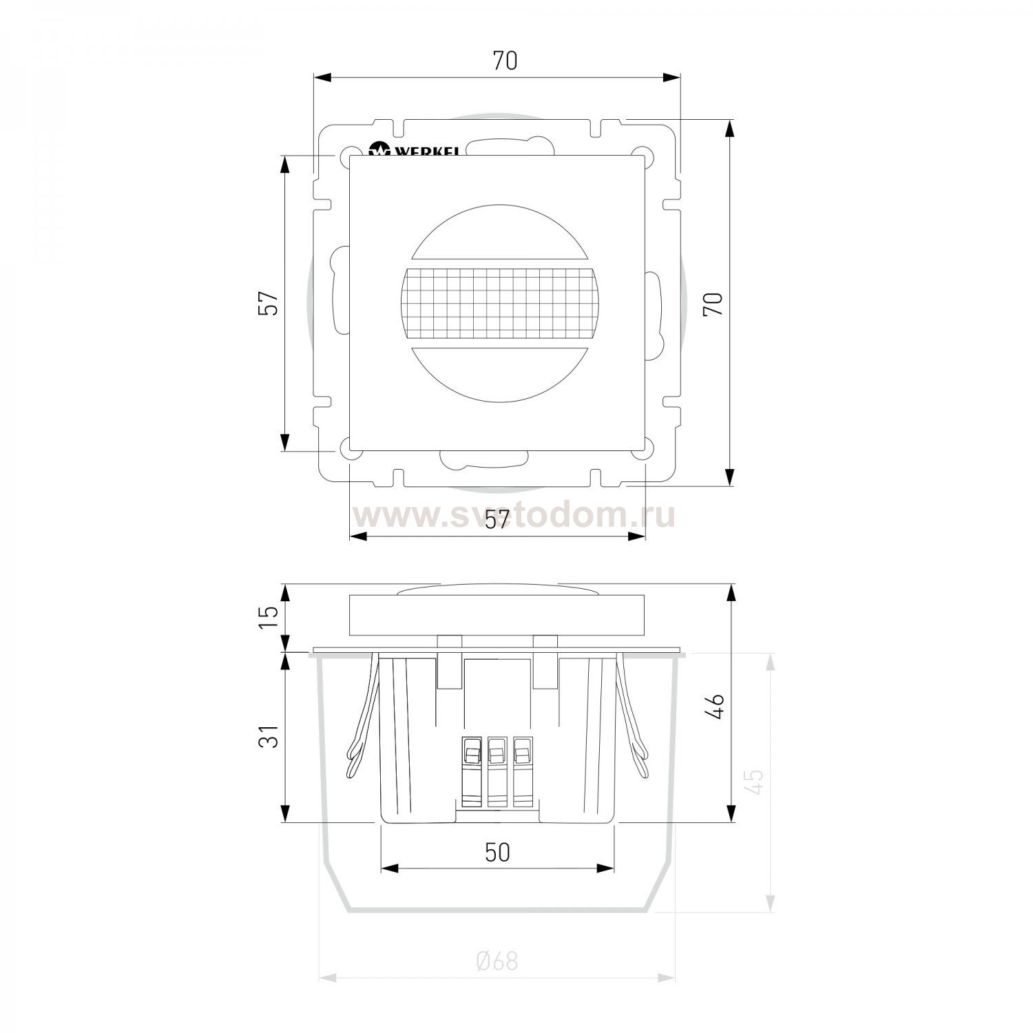 <p>Встраиваемый датчик движения Werkel создан для ценителей комфортных условий и автоматизации освещения.</p> <p>Устройство имеет инфракрасный тип датчика и широко применяется для автоматического включения света во входных зонах, санузлах, коридорах, лестницах. Свет загорается при попадании человека в зону обнаружения, которая составляет 9 метров с углом охвата 160°. При прекращении движения датчик автоматически отключается через заданный регулятором интервал времени, снижая нецелевое использование электроэнергии.</p> <p>Механизм дополнен регулируемым датчиком освещенности, который позволяет настроить автоматическое включение света только в вечернее время. Клавиша, размещенная на лицевой панели, позволяет в ручном режиме включать и выключать нагрузку. Для регулировки датчика освещенности и таймера отключения не требуется демонтаж устройства. Регуляторы расположены под декоративной крышкой на лицевой панели.</p> <p>Механизм устанавливается на пути следования к освещаемому помещению или непосредственно в нем. Монтаж осуществляется в стандартный подрозетник как двухпроводным способом подключения, так и трехпроводным.</p> <p>Датчик рассчитан на работу со всеми видами электроприборов. Максимальная мощность подключаемых ламп накаливания — 500 Вт, LED ламп — 200 Вт.</p> <p>Для регулировки датчика освещенности и таймера отключения не требуется демонтаж устройства. Регуляторы расположены под декоративной крышкой на лицевой панели.</p> <p>Совместимость всех рамок и механизмов Werkel позволяет подобрать оптимальные цветовые и стилевые сочетания, подходящие под любые современные интерьеры.</p>
