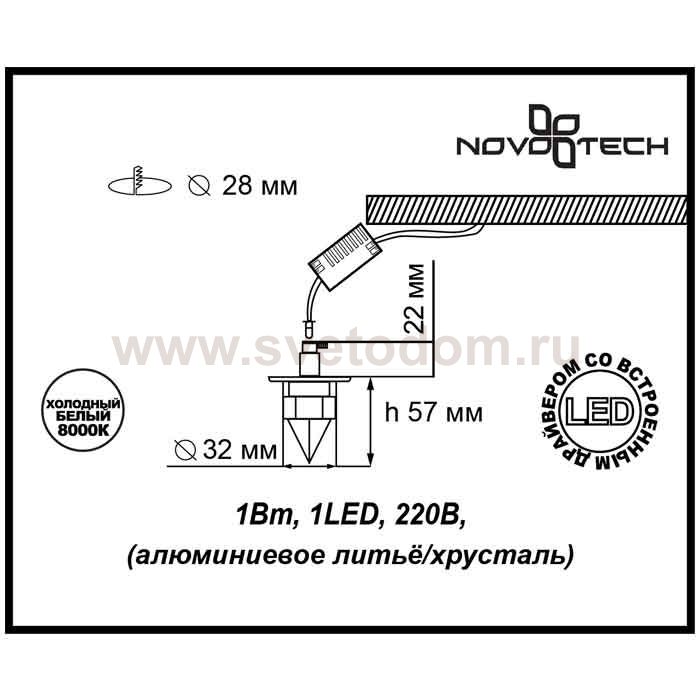 Встраиваемый светодиодный светильник, укомплектован блоком питания Артикул производителя