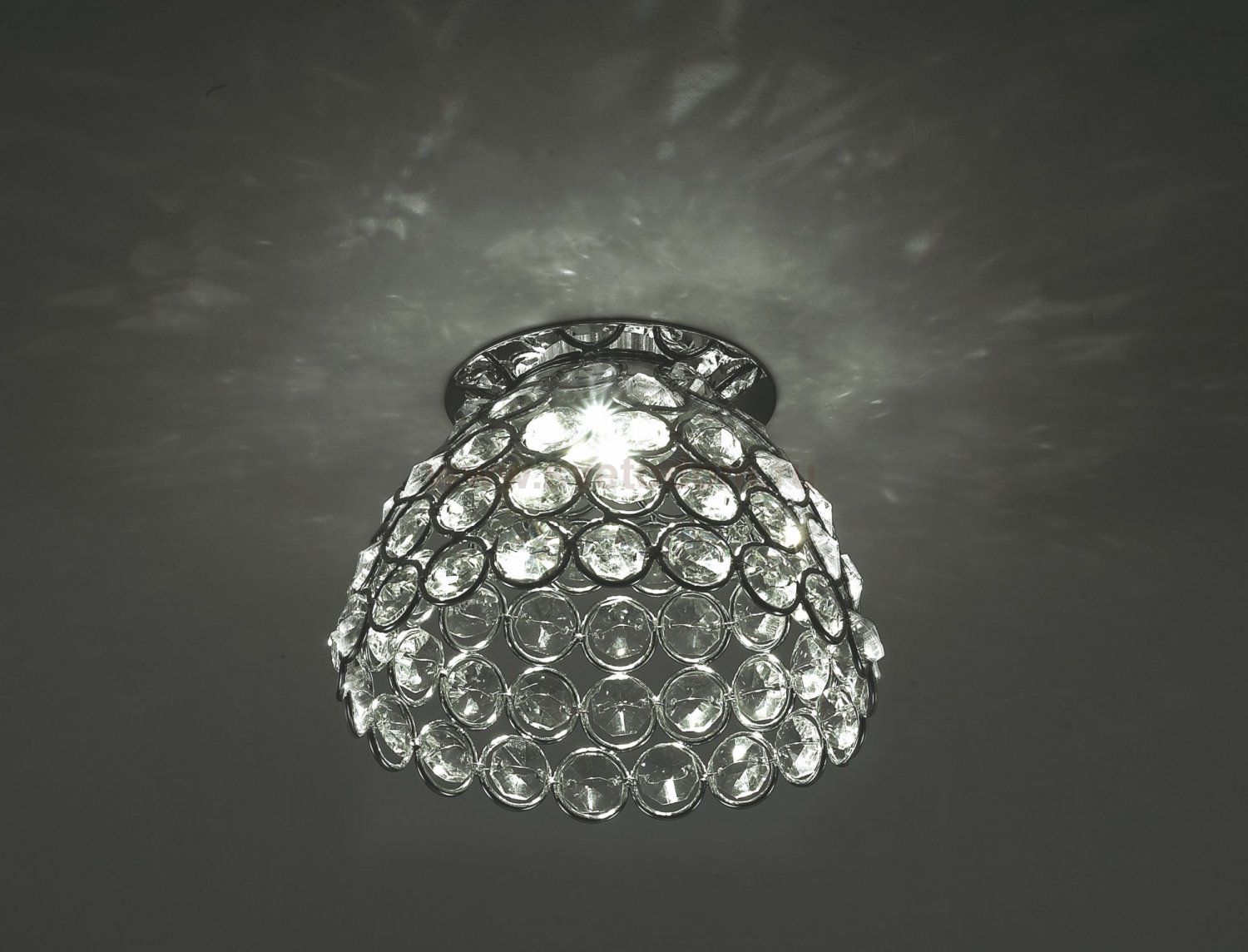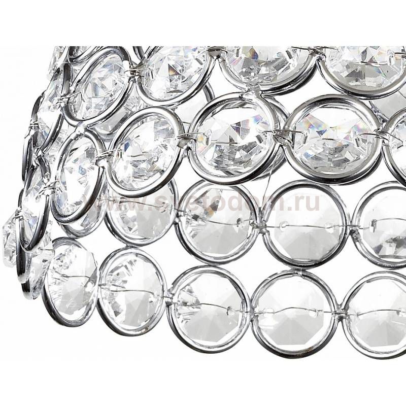 Светильник сделан из металла. Это популярный и востребованный материал благодаря ряду качеств. К ним относится: повышенная прочность, износостойкость и долговечность. Декоративные бусины произведены из хрусталя. Хрусталь обладает высоким показателем плотности, прозрачности и блеска. Благодаря содержанию свинца (не менее 30%) и определённому подбору углов, образуемых гранями, изделия из хрусталя отличаются необыкновенно яркой, многоцветной игрой света, чарующей магией красоты, совершенства и роскоши. Комментарий