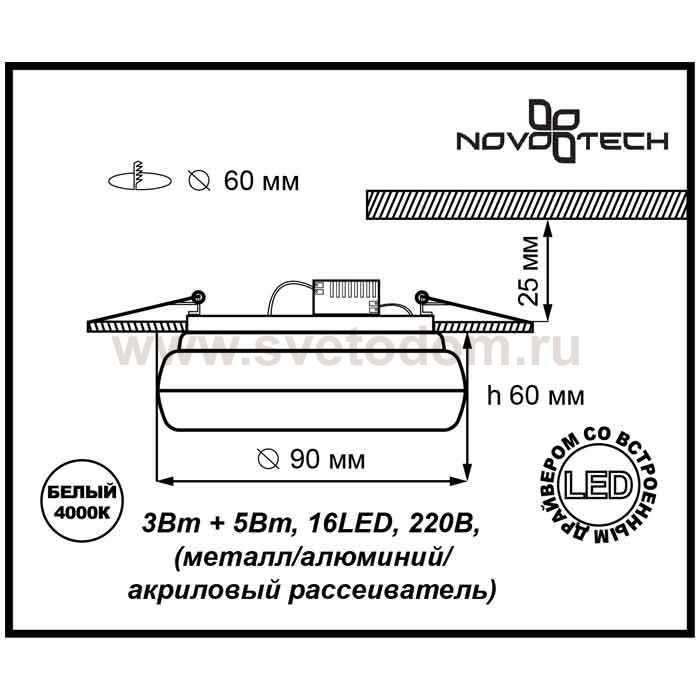 Данный размер указывает какое отверстие необходимо сделать для правильного монтажа. Зачастую светильники выбирают после ремонта и сделанных монтажных отверстий, тогда подбор осуществляется строго в размер +/- 2-5мм.