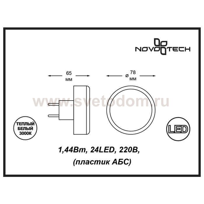 Светильник-ночник (в розетку) светодиодный с выключателем модели Novotech 357322 из серии NIGHT LIGHT отличается следующим качеством: Корпус светильника сделан из пластика АБС. Преимуществами данного материала являются: 1. Химическая инертность – материал устойчив к воздействию кислот и щелочей, продуктов нефтепереработки; 2. Устойчивость к воздействию влаги; 3. Ударопрочность; 4. Долговечность; 5. Ровная поверхность Реагирует на прикосновения.