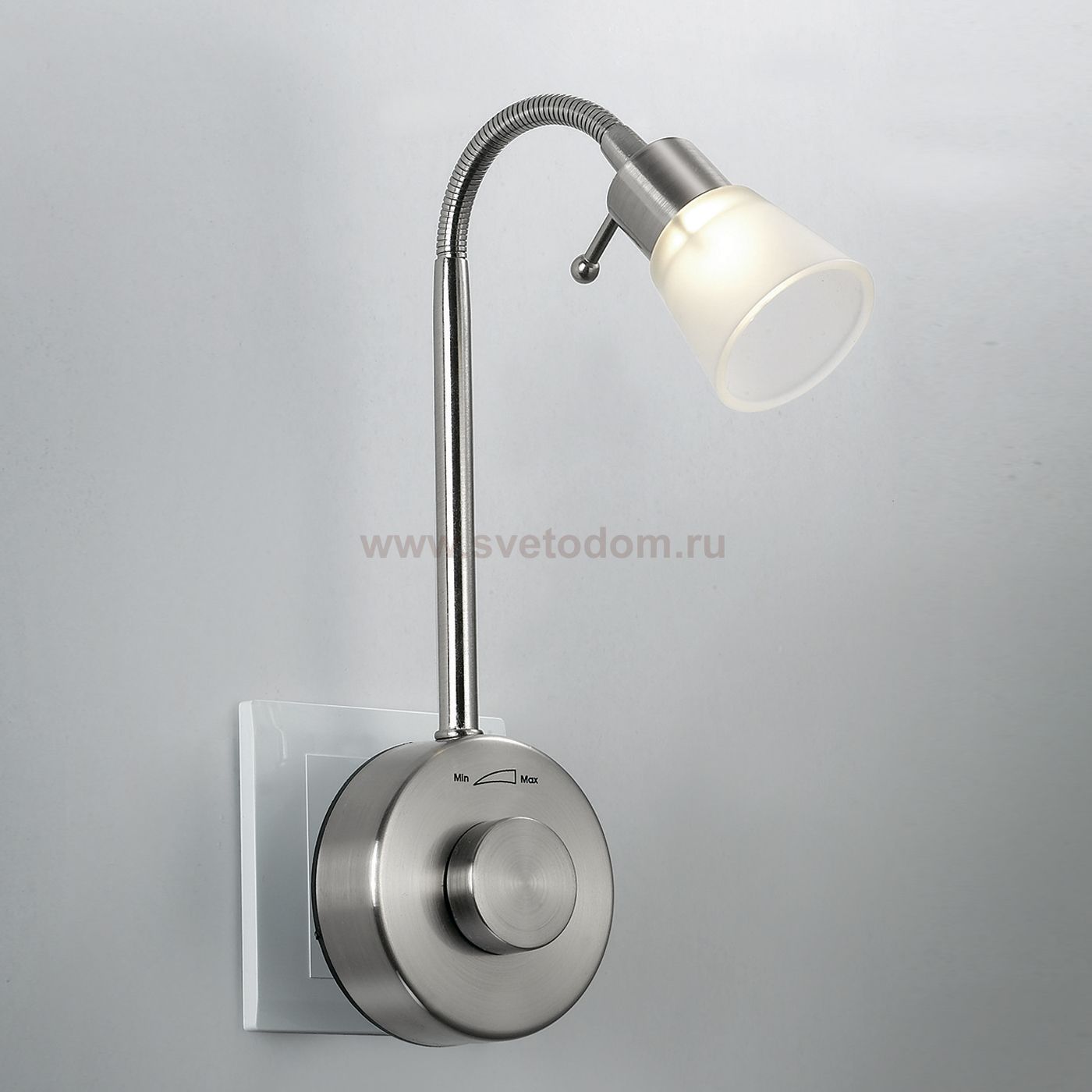 Выключатель светильника сделан из пластика АБС. Преимуществами данного материала являются: 1. Химическая инертность – материал устойчив к воздействию кислот и щелочей, продуктов нефтепереработки; 2. Устойчивость к воздействию влаги; 3. Ударопрочность; 4. Долговечность; 5. Ровная поверхность Гибким металлическим держателем позволяет изменять направление и угол освещения. Наличие светорегулятора (диммера) позволяет плавно управлять процессом освещения. Комментарий