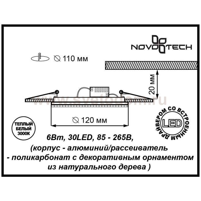 корпус-алюминий/рассеиватель поликарбонат с декоративным арнаментом из дерева Комментарий