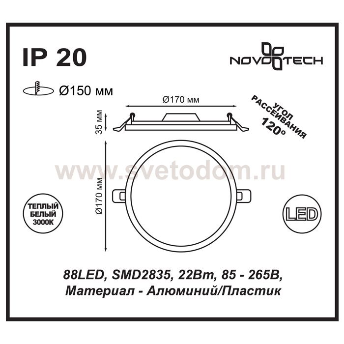 Встраиваемый светильник Novotech 357484 STEA является тенденцией современного функционального врезного потолочного освещения для гостиной, зала, спальни или другого помещения. При выборе обратите внимание на цветовую гамму модели и подберите подходящие люстры, бра или торшеры из аналогичной коллекции, что сделает помещение по-дизайнерски профессиональным и законченным.