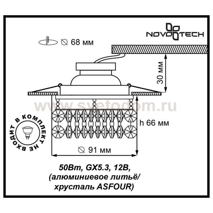 369271 SPOT NT09 хром/хрусталь Встраиваемый НП светильник GX5.3 50W 12V FLAME2 Штрих-код