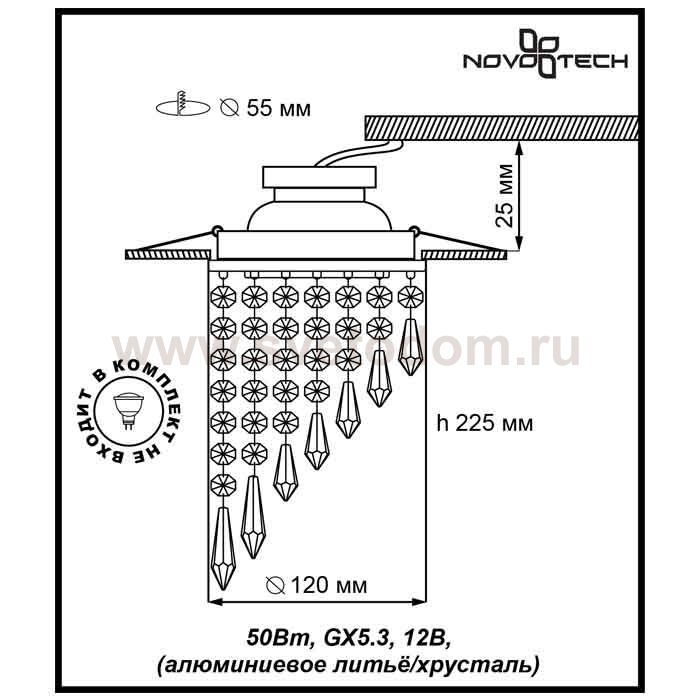 Основание светильника – алюминиевое литьё. Это сплав, основными достоинствами которого являются — устойчивость к практически всем видам негативного воздействия окружающей среды, коррозии, небольшой вес, по сравнению с другими видами металла и экологическая безопасность материала. Декоративные подвески произведены из хрусталя. Он обладает высоким показателем плотности, прозрачности и блеска. Благодаря содержанию свинца (не менее 30%) и определённому подбору углов, образуемых гранями, изделия из хрусталя отличаются необыкновенно яркой, многоцветной игрой света, чарующей магией красоты, совершенства и роскоши. А так же, он обладают красивым звоном.