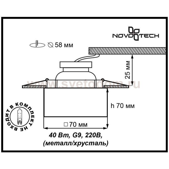 Декоративный встраиваемый неповоротный светильник модели Novotech 369425 из серии CUBIC отличается следующим качеством: Основание светильника сделано из металла. Это популярный и востребованный материал благодаря ряду качеств. К ним относится: повышенная прочность, износостойкость и долговечность. Декоративный плафон произведен из хрусталя. Он обладает высоким показателем плотности, прозрачности и блеска. Благодаря содержанию свинца (не менее 30%) и определённому подбору углов, образуемых гранями, изделия из хрусталя отличаются необыкновенно яркой, многоцветной игрой света, чарующей магией красоты, совершенства и роскоши.