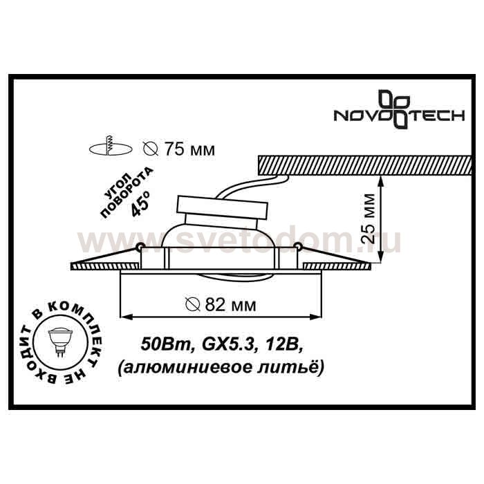 Стандартный встраиваемый поворотный светильник Артикул производителя