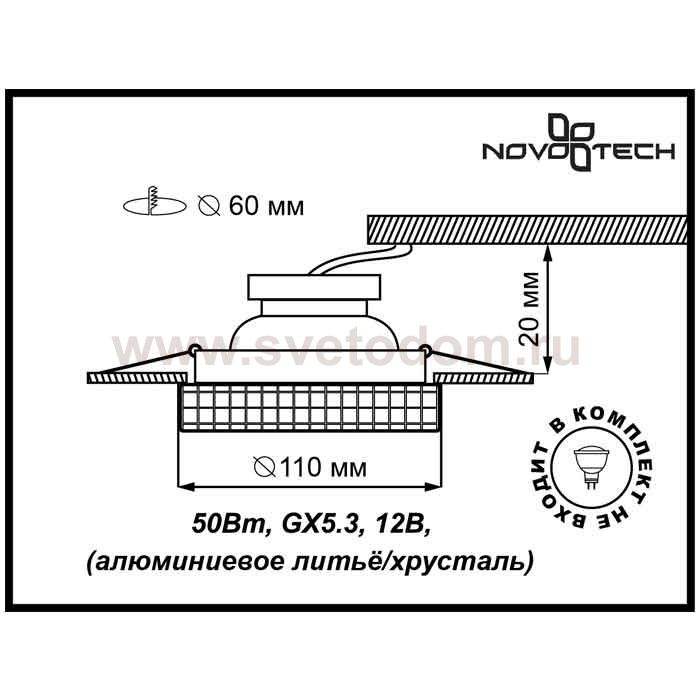 Данный размер указывает какое отверстие необходимо сделать для правильного монтажа. Зачастую светильники выбирают после ремонта и сделанных монтажных отверстий, тогда подбор осуществляется строго в размер +/- 2-5мм.