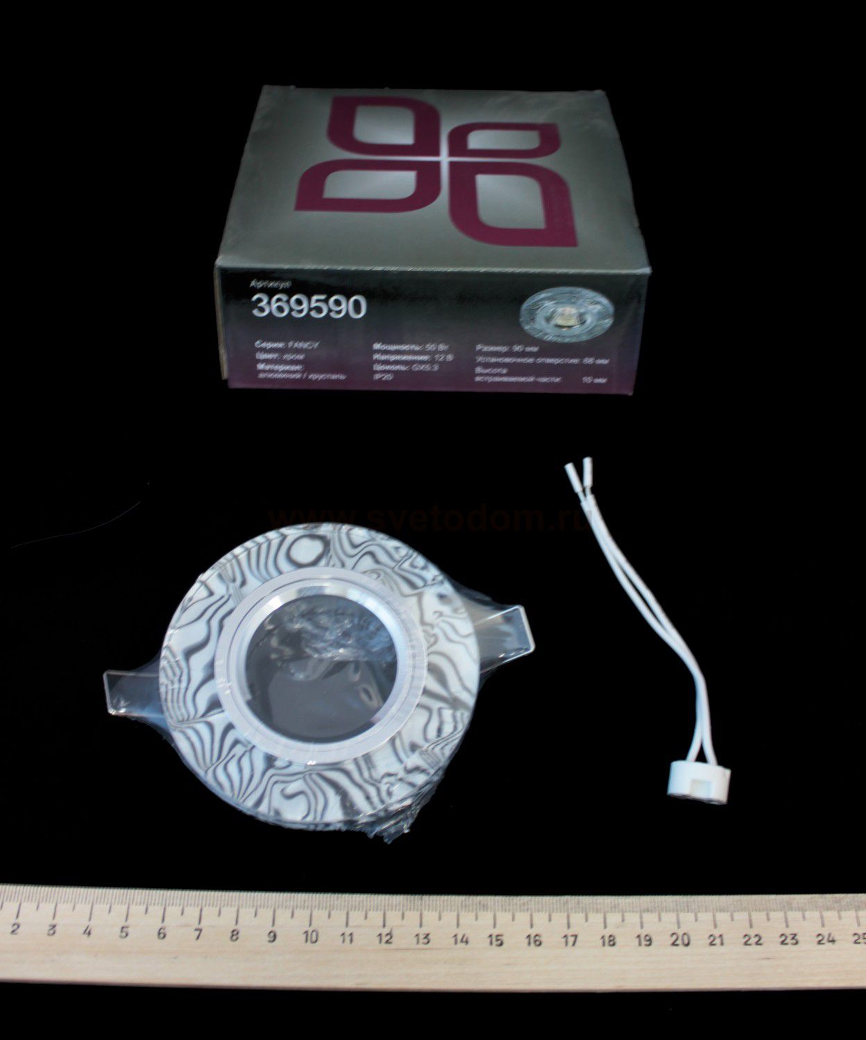 Декоративный встраиваемый светильник модели Novotech 369590 из серии FANCY отличается следующим качеством: Основание светильника сделано из алюминия. Это лёгкий металл, основными достоинствами которого являются — устойчивость к практически всем видам негативного воздействия окружающей среды, коррозии, небольшой вес, по сравнению с другими видами металла и экологическая безопасность материала. Декоративный плафон произведен из хрусталя. Он обладает высоким показателем плотности, прозрачности и блеска. Благодаря содержанию свинца (не менее 30%) и определённому подбору углов, образуемых гранями, изделия из хрусталя отличаются необыкновенно яркой, многоцветной игрой света, чарующей магией красоты, совершенства и роскоши.