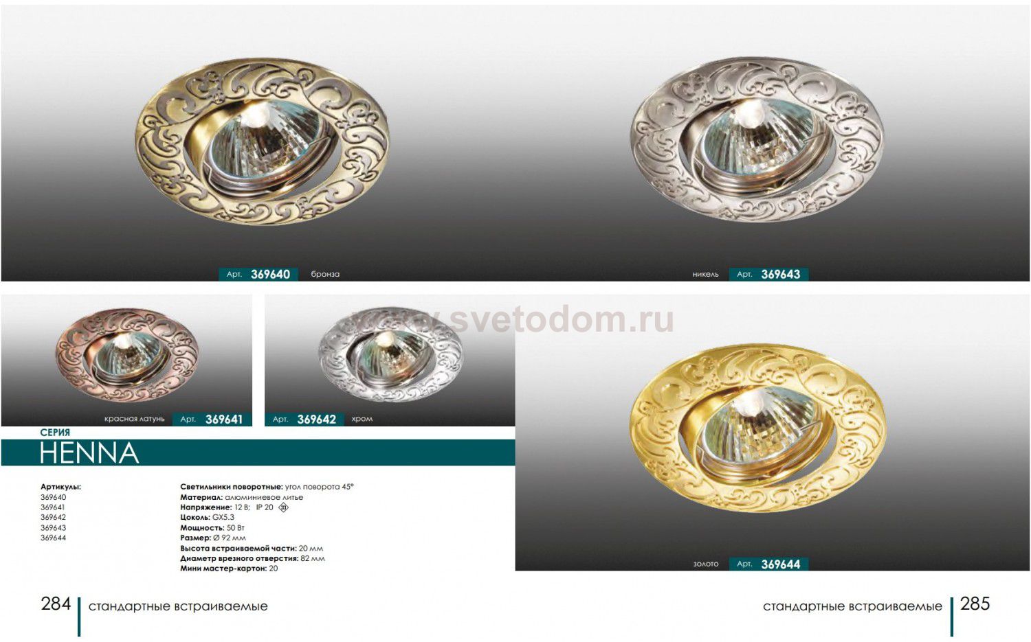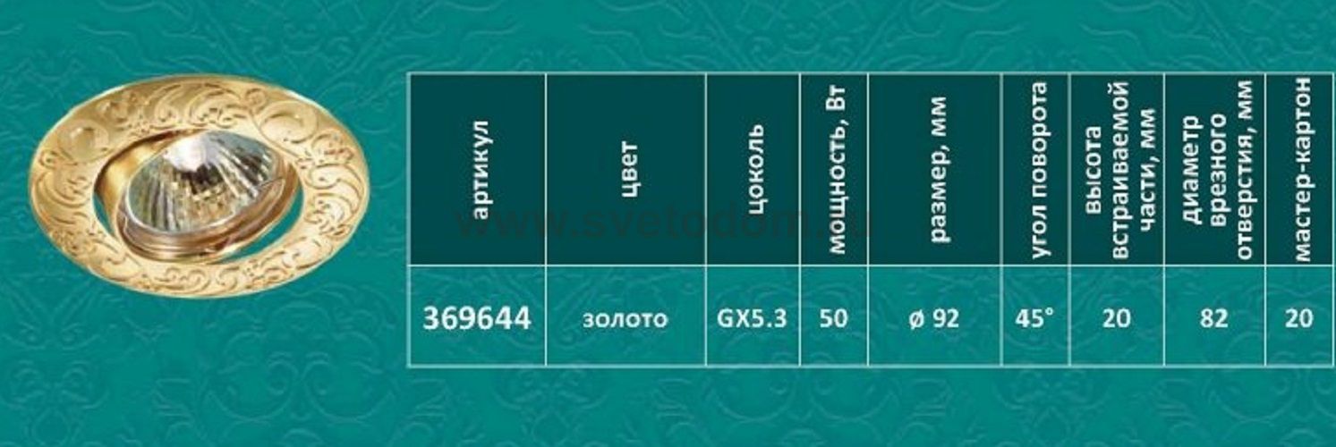 369644 SPOT NT12 268 золото Встраиваемый ПВ светильник IP20 GX5.3 50W 12V HENNA Штрих-код