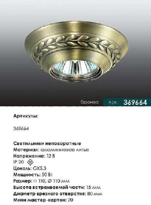 92 Отзывы Точечный встраиваемый светильник Novotech 369664 BRANCHВлад