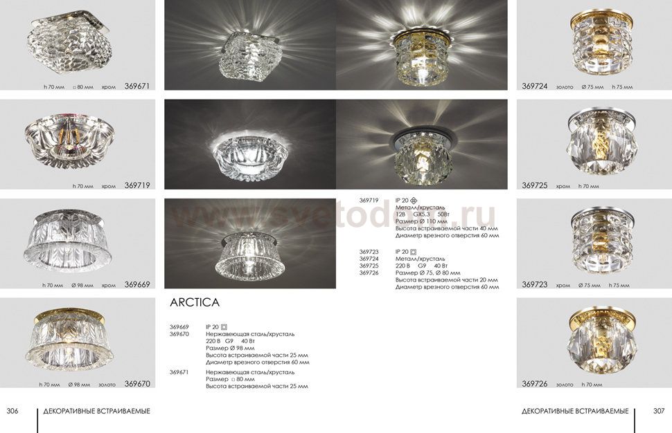 Декоративный встраиваемый светильник модели Novotech 369723 из серии ARCTICA отличается следующим качеством: Корпус светильника сделан из металла. Это популярный и востребованный материал благодаря ряду качеств. К ним относится: повышенная прочность, износостойкость и долговечность. Декоративный плафон произведен из хрусталя. Он обладает высоким показателем плотности, прозрачности и блеска. Благодаря содержанию свинца (не менее 30%) и определённому подбору углов, образуемых гранями, изделия из хрусталя отличаются необыкновенно яркой, многоцветной игрой света, чарующей магией красоты, совершенства и роскоши.