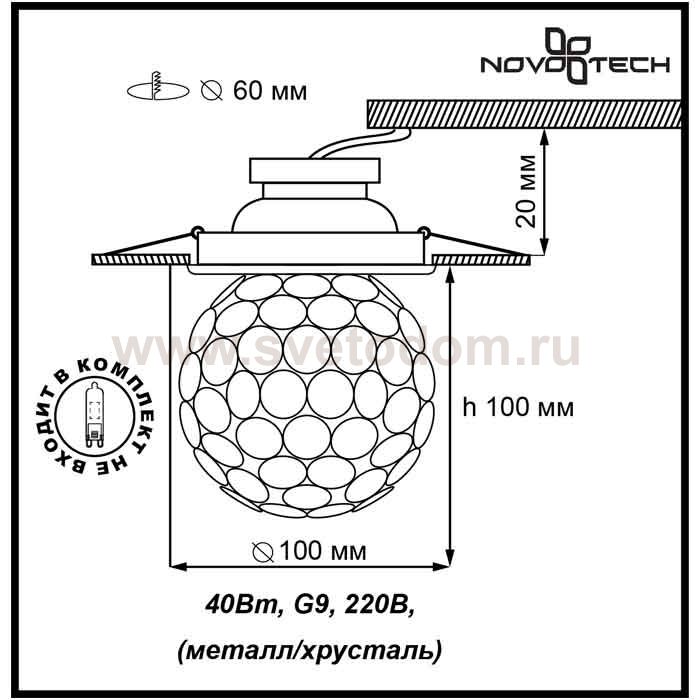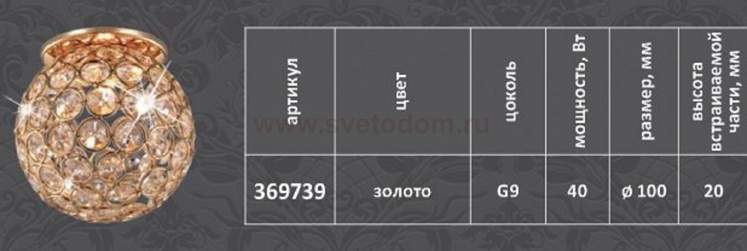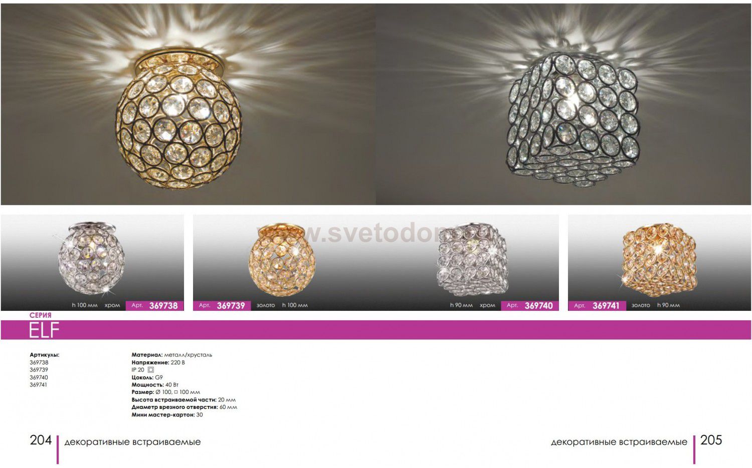369739 SPOT NT12 золото Встраиваемый светильник IP20 G9 40W 220V ELF Штрих-код