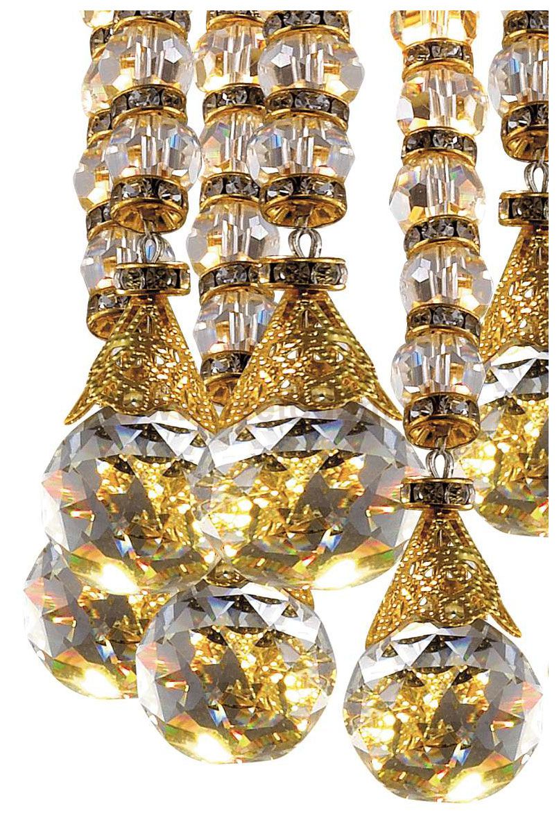 Основание светильника сделано из металла. Это популярный и востребованный материал благодаря ряду качеств. К ним относится: повышенная прочность, износостойкость и долговечность. Подвески изготовлены из хрусталя. Он обладает высоким показателем плотности, прозрачности и блеска. Благодаря содержанию свинца (не менее 30%) и определённому подбору углов, образуемых гранями, изделия из хрусталя отличаются необыкновенно яркой, многоцветной игрой света, чарующей магией красоты, совершенства и роскоши. А так же, он обладают красивым звоном. Комментарий
