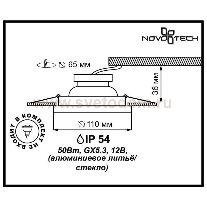 369883 SPOT NT14 250 прозрачный Встраиваемый светильник IP54 GX5.3 50W 12V AQUA Штрих-код