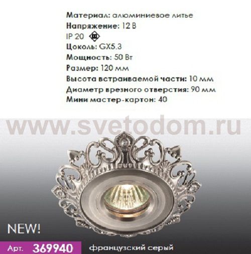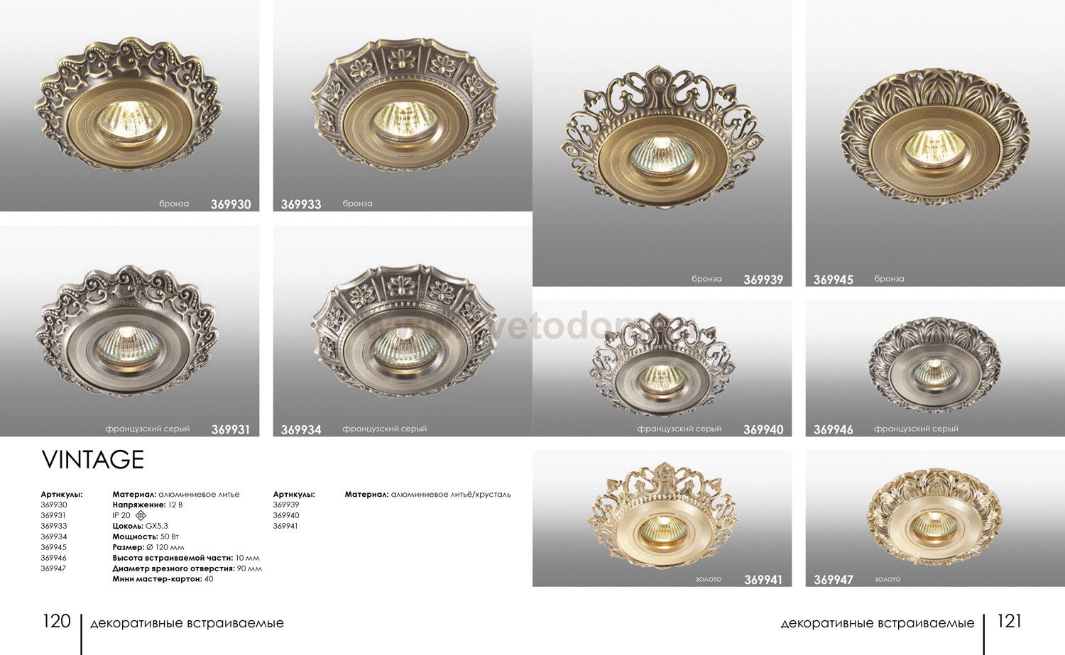 Декоративный встраиваемый светильник модели Novotech 369940 из серии VINTAGE отличается следующим качеством: Светильник сделан из алюминиевого литья. Это сплав, основными достоинствами которого являются — устойчивость к практически всем видам негативного воздействия окружающей среды, коррозии, небольшой вес, по сравнению с другими видами металла и экологическая безопасность материала.