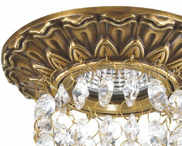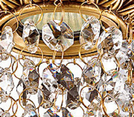 Корпус светильника произведено из сплава цинка. Благодаря сравнительно высоким механическим и литейным качествам, изделия, выполненные из сплава цинка, отличаются высокой точностью деталей декора со сложной конфигурацией. Так же он обладает антикоррозийными свойствами. Декоративные подвески сделаны из хрусталя. Он обладает высоким показателем плотности, прозрачности и блеска. Благодаря содержанию свинца (не менее 30%) и определённому подбору углов, образуемых гранями, изделия из хрусталя отличаются необыкновенно яркой, многоцветной игрой света, чарующей магией красоты, совершенства и роскоши. Комментарий
