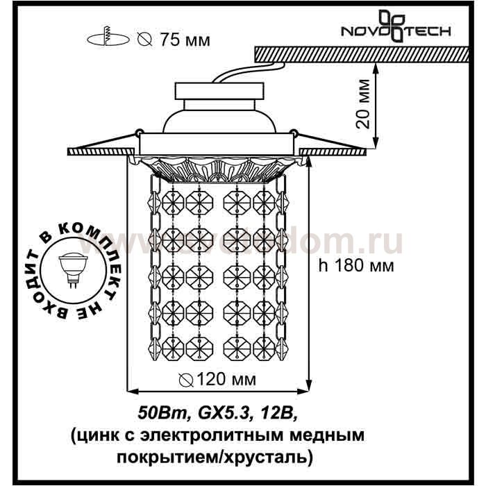 цинк с электролитным медным покрытием / хрусталь Материал плафона
