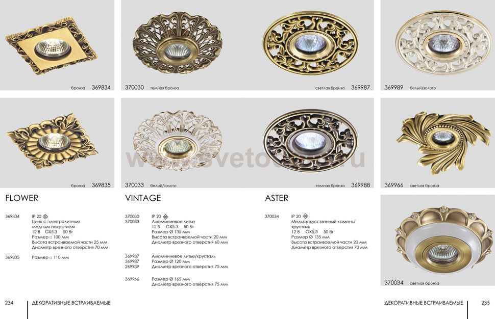 369988 SPOT NT15 259 темная бронза/хрусталь Встраиваемый светильник IP20 GX5.3 50W 12V VINTAGE Штрих-код
