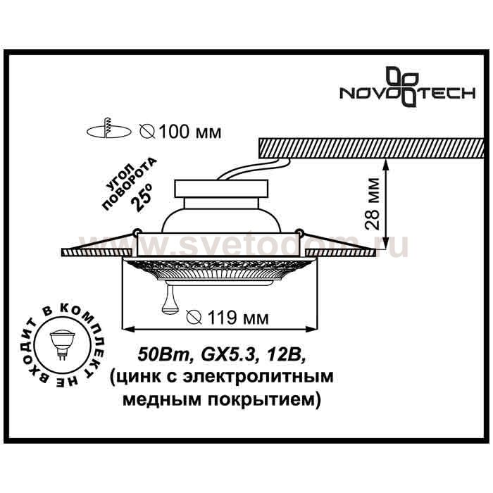 370016 SPOT NT15 259 белый/золото Встраиваемый светильник IP20 GX5.3 50W 12V VINTAGE Штрих-код