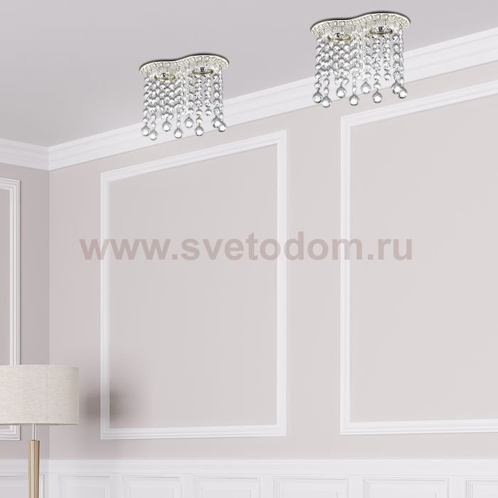 белое основание с золотым декором, прозрачные хрустальные подвески Цвет плафона / абажура