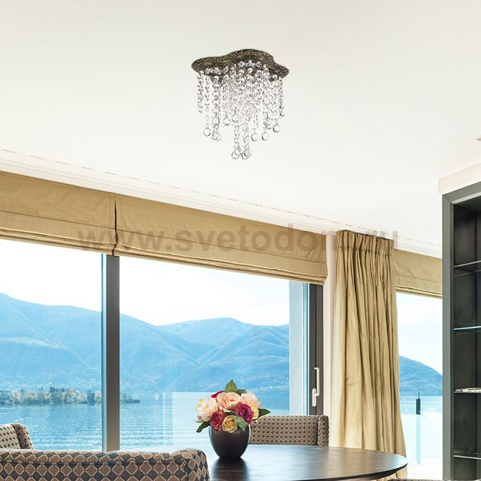 основание - бронза, прозрачные хрустальные подвески Цвет плафона / абажура