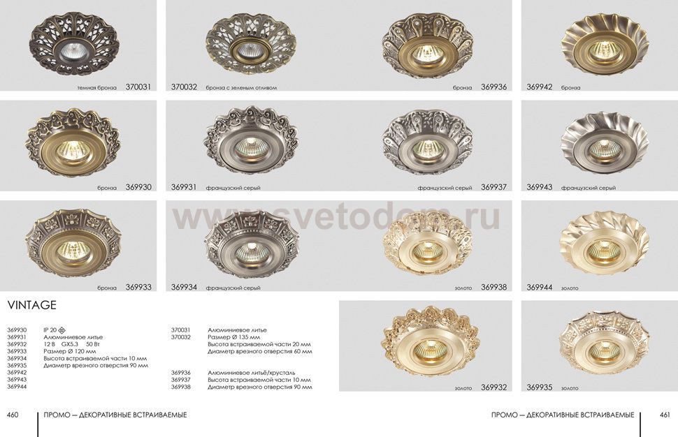 Декоративный встраиваемый светильник модели Novotech 370031 из серии VINTAGE отличается следующим качеством: Светильник произведен из сплава цинка. Благодаря сравнительно высоким механическим и литейным качествам, изделия, выполненные из сплава цинка, отличаются высокой точностью деталей декора со сложной конфигурацией. Так же он обладает антикоррозийными свойствами.