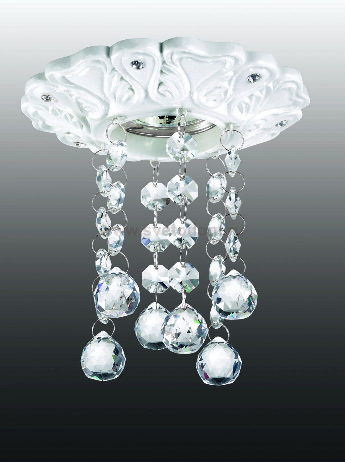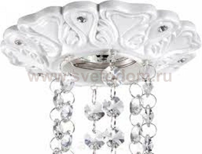 белое основание с декоративными хрустальными вставками, прозрачные хрустальные подвески Цвет плафона / абажура