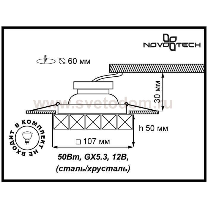 370171 SPOT NT15 264 хром/цветной хрусталь Встраиваемый светильник IP20 GX5.3 50W 12V NEVIERA Штрих-код