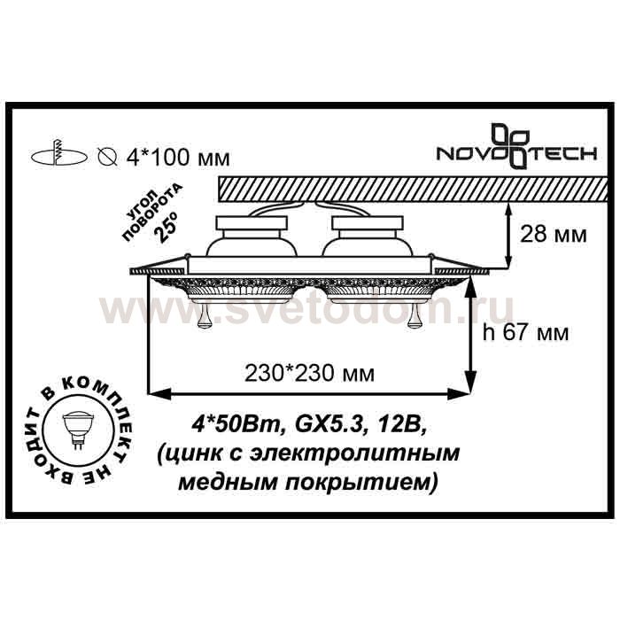 370178 SPOT NT15 259 бронза Встраиваемыйсветильник ПВ IP20 GX5.3 4*50W 12V VINTAGE Штрих-код