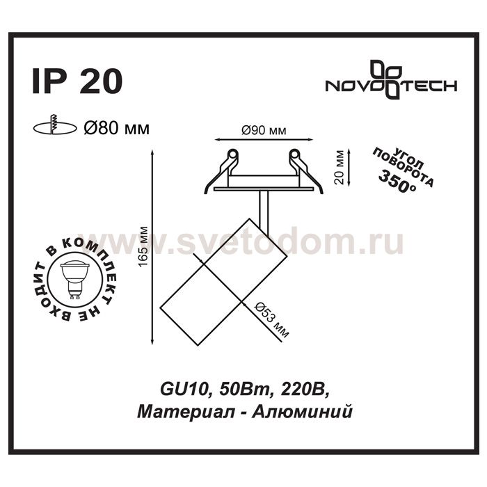 370393 SPOT NT18 239 белый Встраиваемый светильник IP20 GU10 50W 220V PIPE Штрих-код