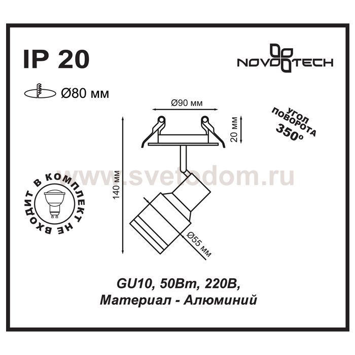 Строгие геометрические формы светильника позволяют использовать их как в классических, так и в современных дизайнерских интерьерах. Корпус светильника изготовлен из алюминия высочайшего качества. Для покрытия использовалась порошковая краска и специальный лак, что делает светильник устойчивым к механическим повреждениям и гарантирует долговечность эксплуатации. В качестве источника света в светильнике используется лампа с цоколем GU10 (лампа в комплект не входит). Светильник имеет степень влагозащищенности (IP20), поэтому подходит для установки только в квартире или другом сухом помещении, где он не будет находиться под воздействием влаги.