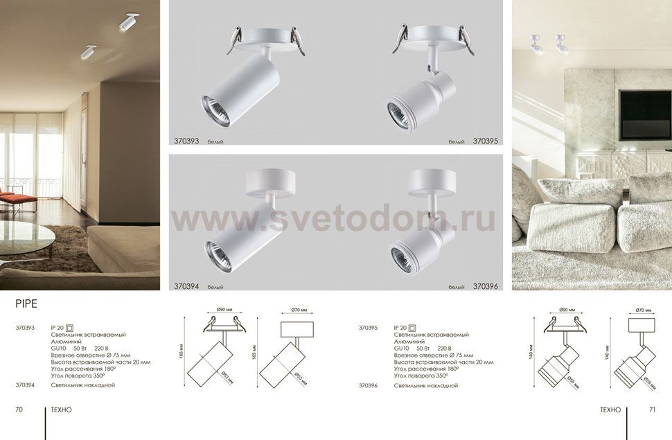 370395 SPOT NT18 239 белый Встраиваемый светильник IP20 GU10 50W 220V PIPE Штрих-код