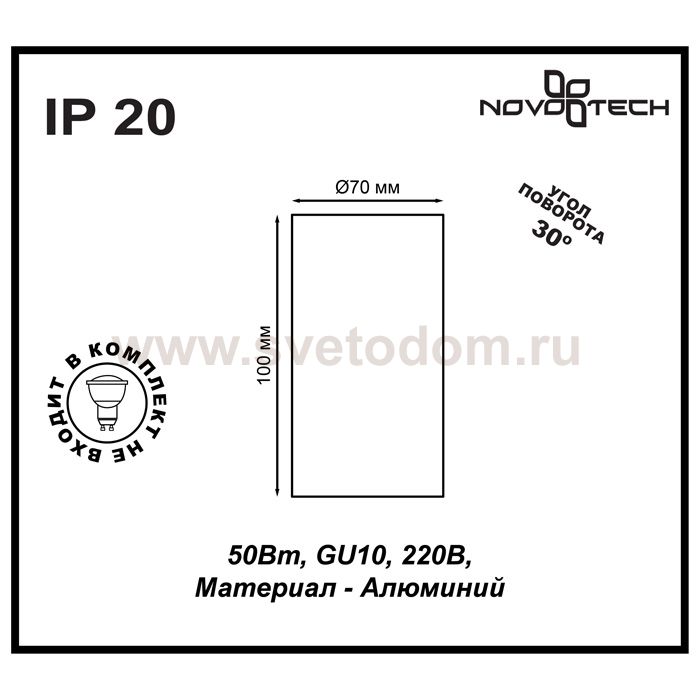 Строгие геометрические формы светильника позволяют использовать их как в классических, так и в современных дизайнерских интерьерах. Корпус светильника изготовлен из алюминия высочайшего качества. Для покрытия использовалась порошковая краска и специальный лак, что делает светильник устойчивым к механическим повреждениям и гарантирует долговечность эксплуатации. В качестве источника света в светильнике используется лампа с цоколем GU10 (лампа в комплект не входит). Светильник имеет степень влагозащищенности (IP20), поэтому подходит для установки только в квартире или другом сухом помещении, где он не будет находиться под воздействием влаги. Этот светильник предназначен для накладного монтажа, что позволяет устанавливать его уже после того, как смонтирован потолок.