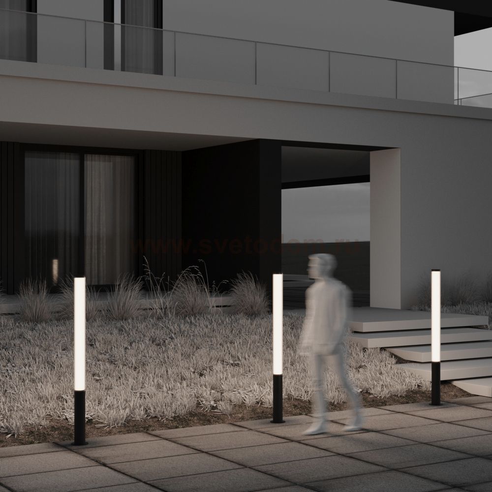 Материал арматуры — акрил, алюминий. Цвет черный. Двойной плафон — внутри белый матовый акрил, снаружи декоративный прозрачный акрил с рельефными линиями. Три размера — три варианта мощности. LED источник света. Цветовая температура 3000К. Защита корпуса от пыли и влаги — IP65.