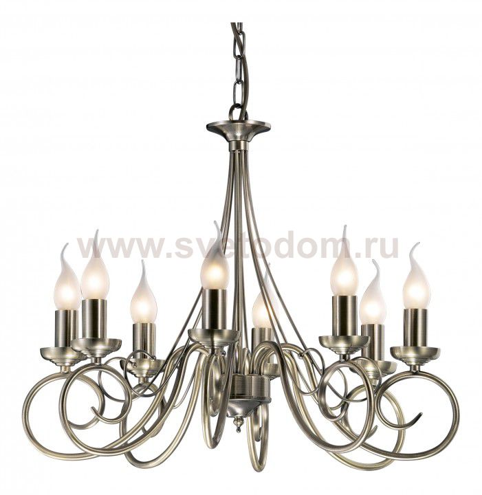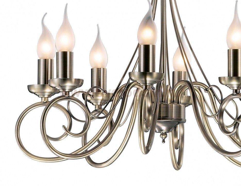 Изящная люстра ODEON LIGHT 1297/8 бронза Sandia создана для освещения и украшения просторного помещения площадью до тридцати двух квадратных метров! Ее конструкция выполнена в форме подвесного подсвечника с восемью свечами. Сочетание металлических элементов и белых матовых плафонов, похожих на пламя, делают люстру современной и стильной. Она подчеркнет ваш изысканный вкус, и всегда будет привлекать к себе внимание!