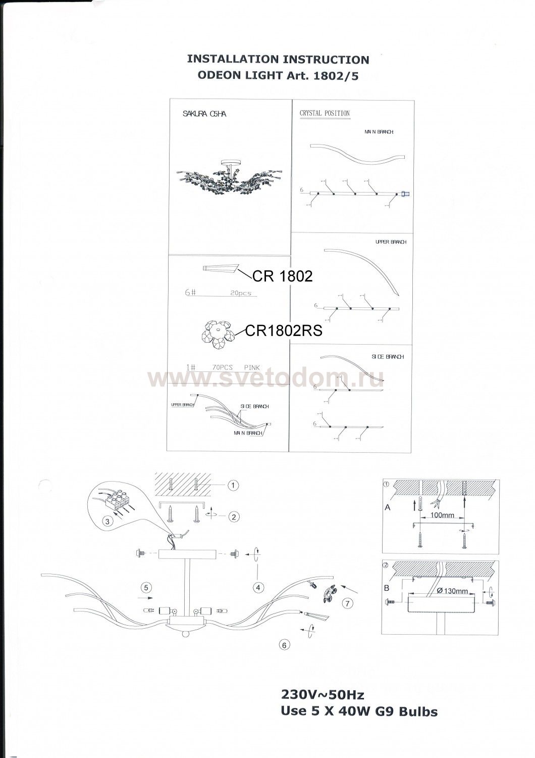 Дополнительно рекомендуем посмотреть другие хрустальные люстры и светильники из данной серии. Модель - люстры Odeon Light 1802/5 в хроме Sakura замечательно впишется в задуманный Вами интерьер зала, гостиной или спальни. Купите хрустальную люстру уже сегодня и Вы поймете превосходство светильников перед другими направлениями освещения. Основное превосходство хрусталя - это отражение и преломление света во всем пространстве, а отсутствие абажуров не съест получаемый световой поток от горящих ламп!
