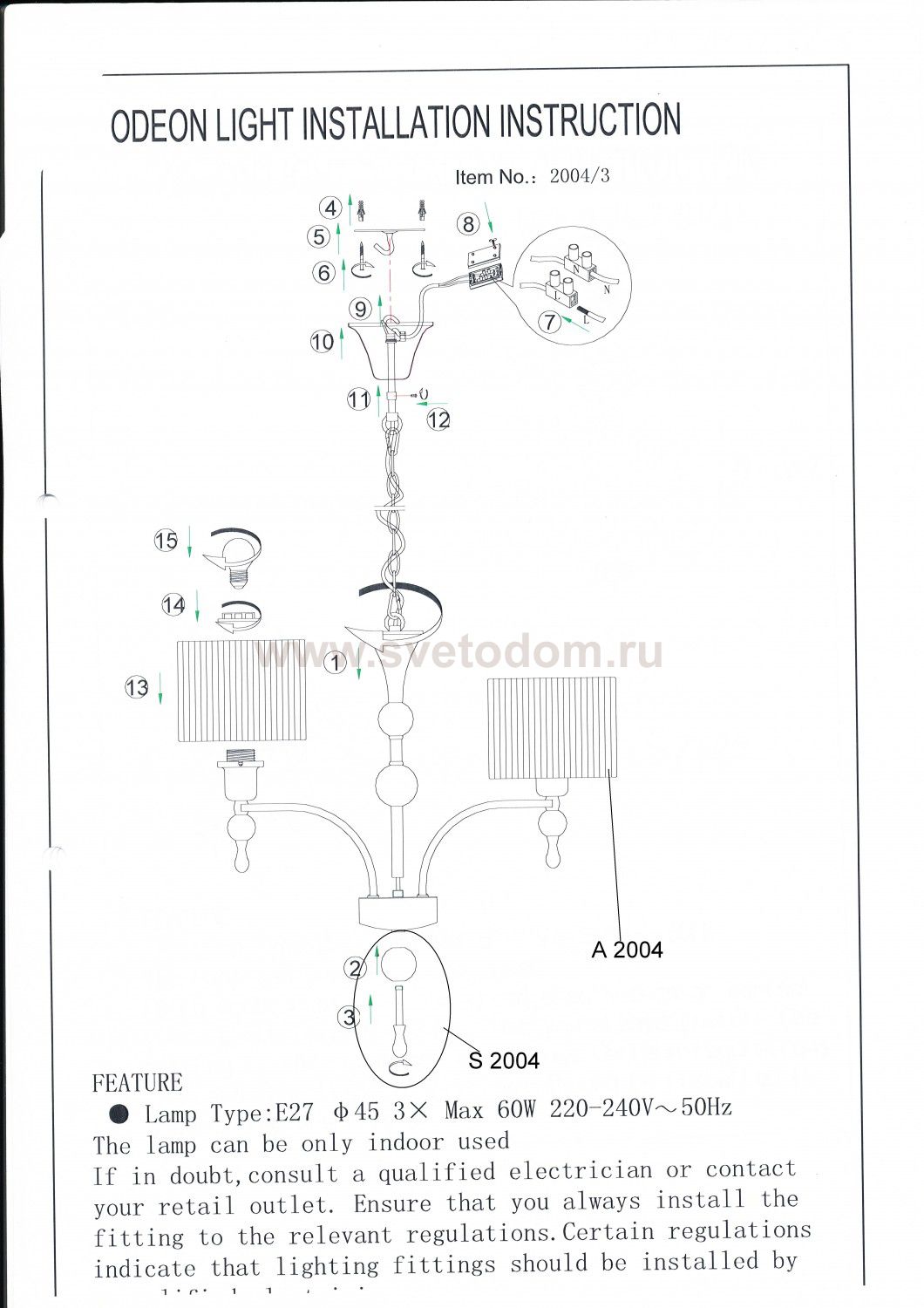 Удивительная модель 2004/3 от фабрики Odeon light (Италия) серии VIGA представляет собой люстру выполненный по технически выверенным чертежам и эскизам итальянских дизайнеров. Подходит как для бытового, так и для общественного использования со стандартными и диодными лампами.