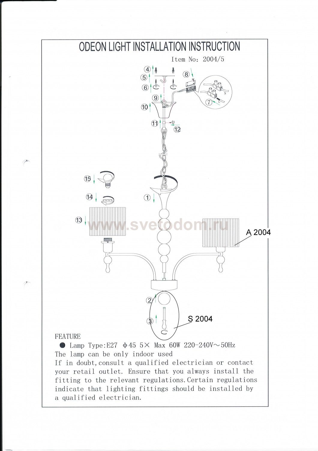 Удивительная модель 2004/5 от фабрики Odeon light (Италия) серии VIGA представляет собой люстру выполненный по технически выверенным чертежам и эскизам итальянских дизайнеров. Подходит как для бытового, так и для общественного использования со стандартными и диодными лампами.