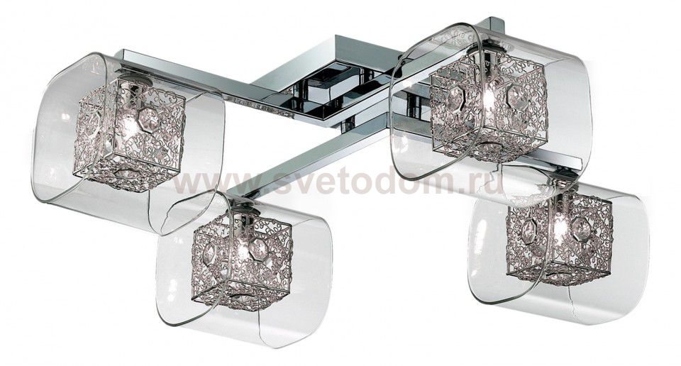 плафон: из прозрачного стекла кубической формы, металлический куб с встроенными хрустальными элементами, арматура: металл, декор: хрусталь Материал плафона