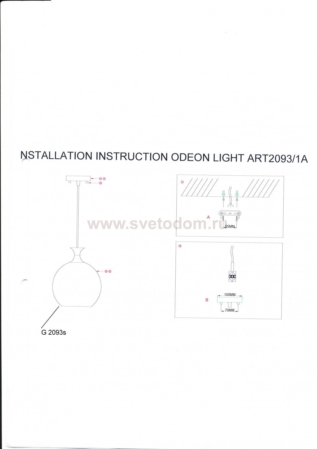Светильник подвесной Артикул производителя
