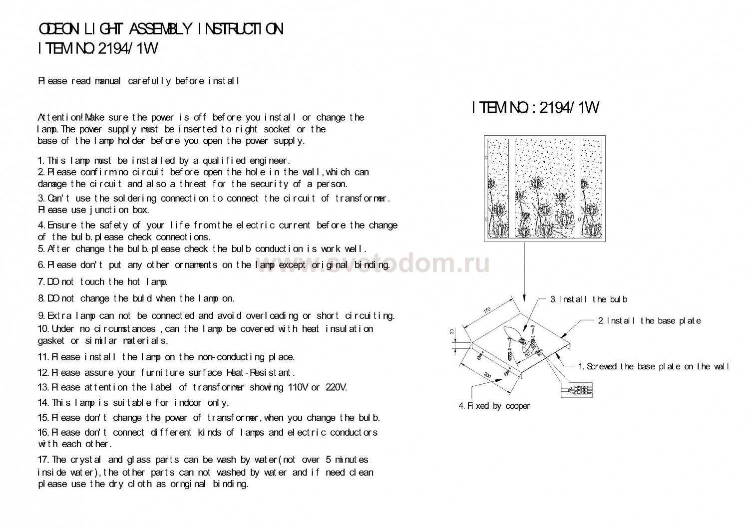 Рекомендуемая мощность 1 лампы: W