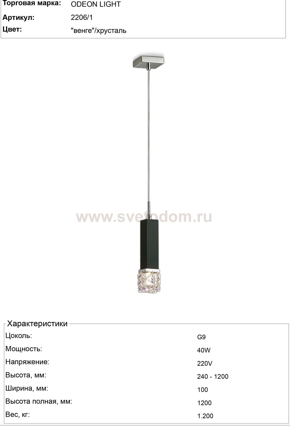 Подвесной светильник – это универсальный вариант, подходящий для любой комнаты. Сегодня производители предлагают огромный выбор таких моделей по самым разным ценам. В каталоге интернет-магазина «Светодом» мы собрали большое количество интересных и оригинальных светильников по выгодной стоимости. Вы можете приобрести их в Москве, Екатеринбурге и любом другом городе России. Подвесной светильник Odeon light 2206/1 сразу же привлечет внимание Ваших гостей благодаря стильному исполнению. Благородный дизайн позволит использовать эту модель практически в любом интерьере. Она обеспечит достаточно света и при этом легко монтируется. Чтобы купить подвесной светильник Odeon light 2206/1 , воспользуйтесь формой на нашем сайте или позвоните менеджерам интернет-магазина.