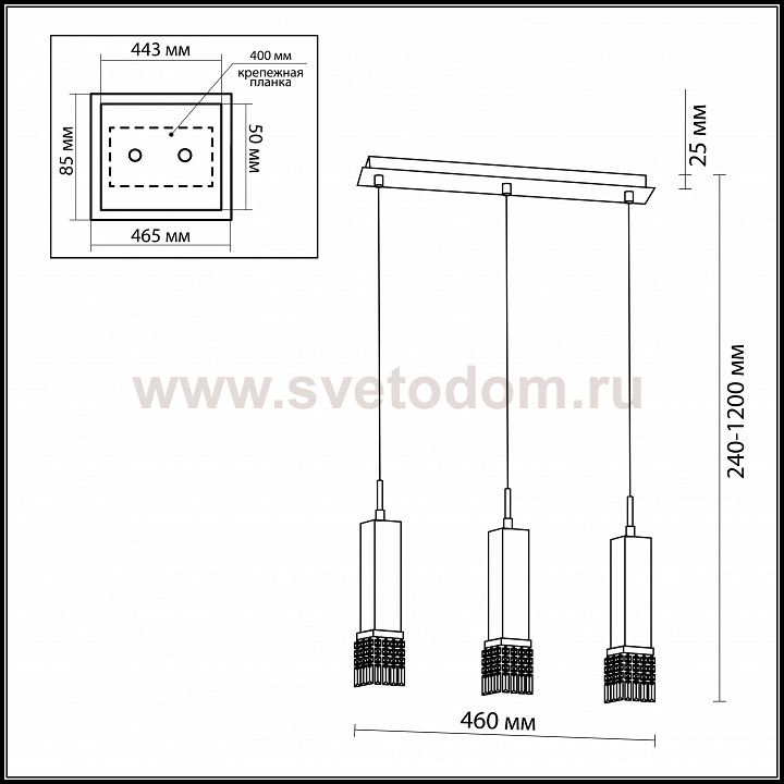 плафон: в виде призмы из металла в цвете темного венге, арматура: металл, декор: хрусталь Материал плафона